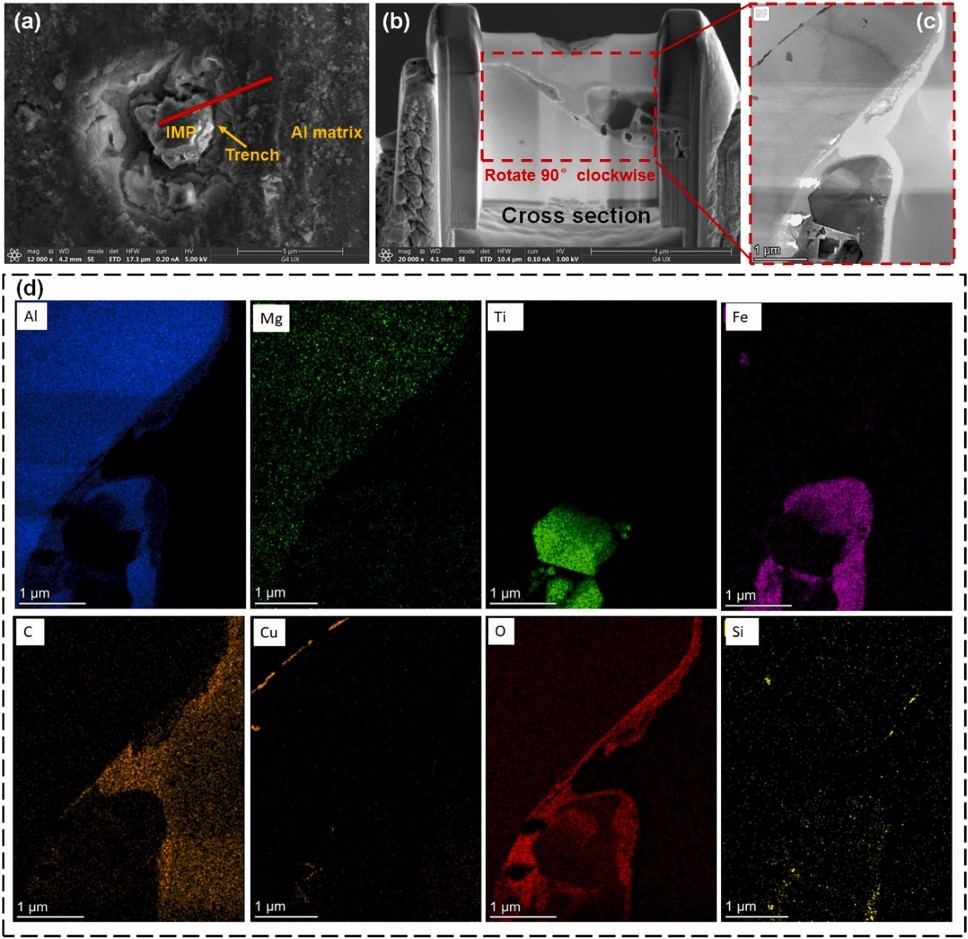 图 1. 动态海水/大气界面区局部腐蚀萌生位点夹杂物表征