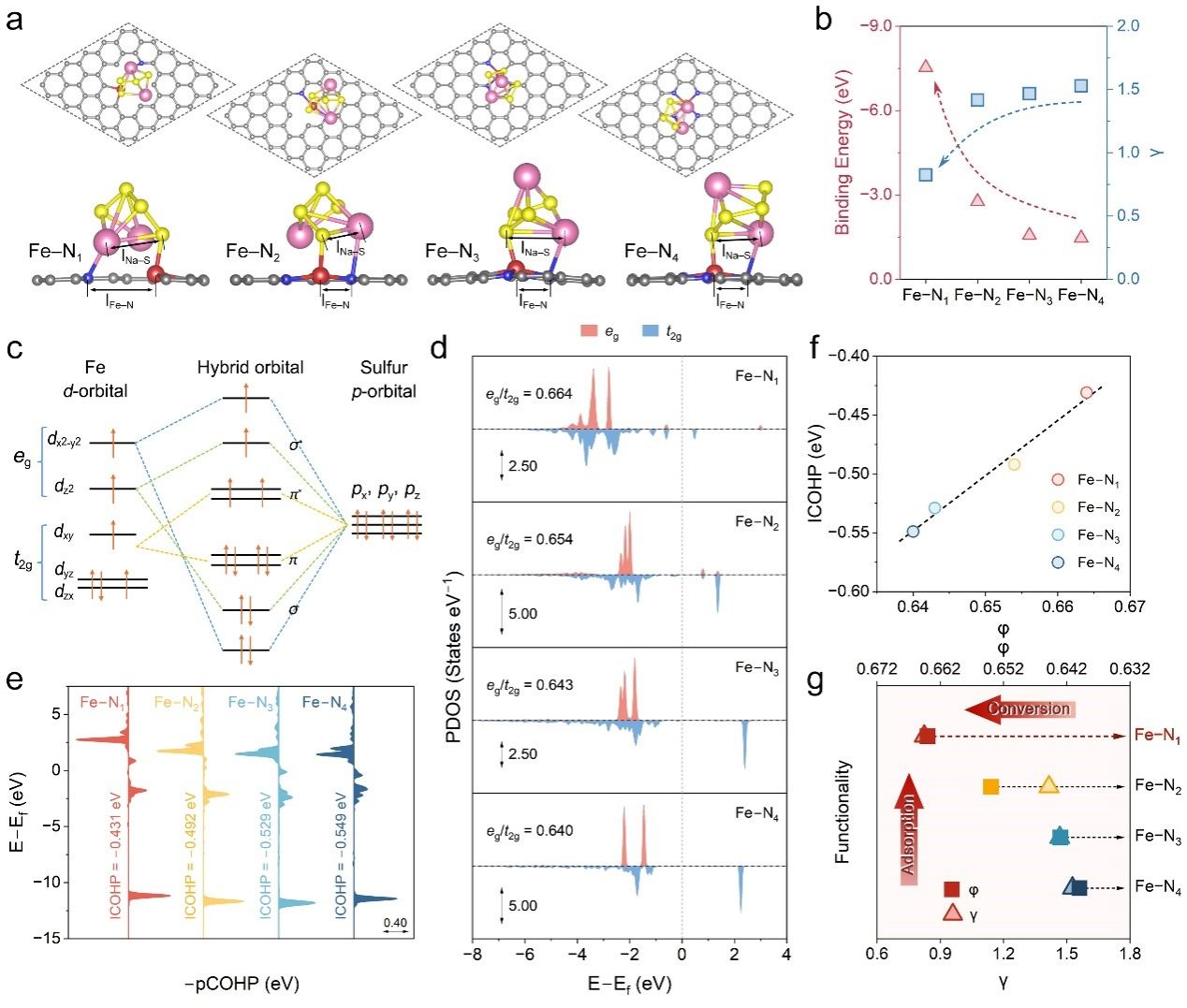 图4:从电子结构方面解析Fe‒Nx不饱和度对Na-S电化学的影响