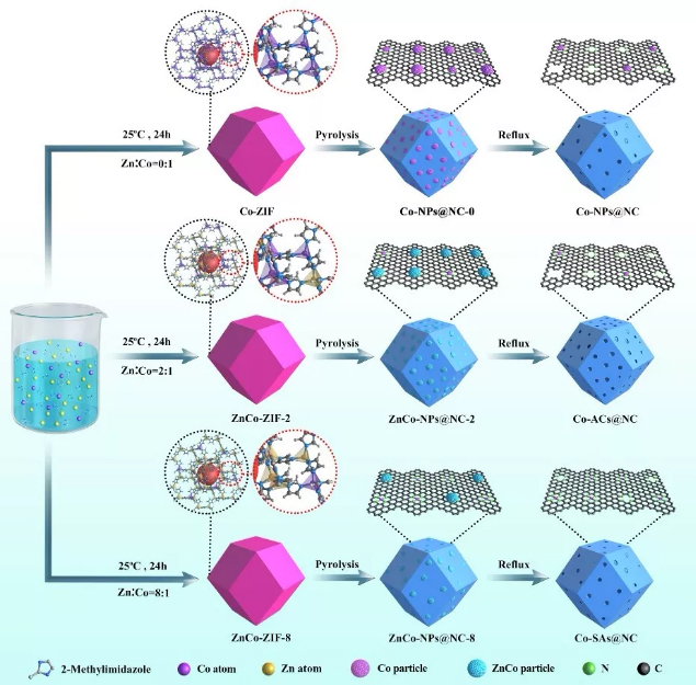 图3. 双金属ZnCo-ZIFs 制备高效电催化剂