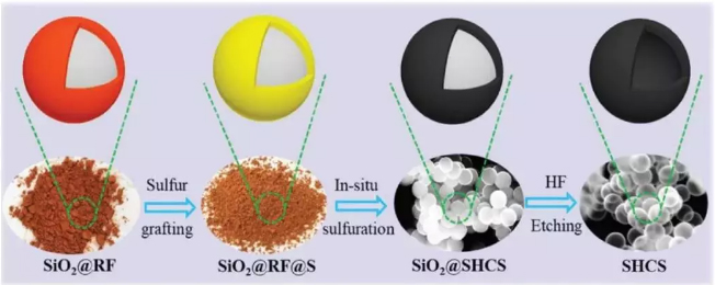 图3. 硫接枝空心碳球(SHCS)的合成工艺流程