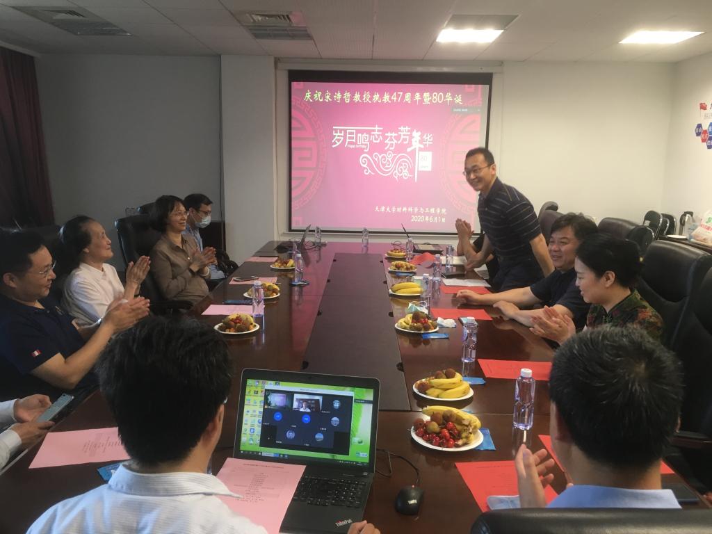 6月1日,宋诗哲教授执教47周年暨80华诞庆祝活动在天津大学材料学院310会议室举行。材料学院党委书记尚宇光、院长胡文彬、国家级教学名师赵乃勤、金属所所长刘永长、金属所党支部书记朱胜利、金属所教学主任王吉会、院党委副书记王莹以及来自材料学院的师生代表欢聚一堂,共同庆贺宋诗哲教授80岁生日。同时,宋老师曾指导过的毕业学生通过网络视频的方式参加活动,从全国各地送来了对宋老师的祝福。活动由高志明、夏大海教师通过线下线上同时主持。