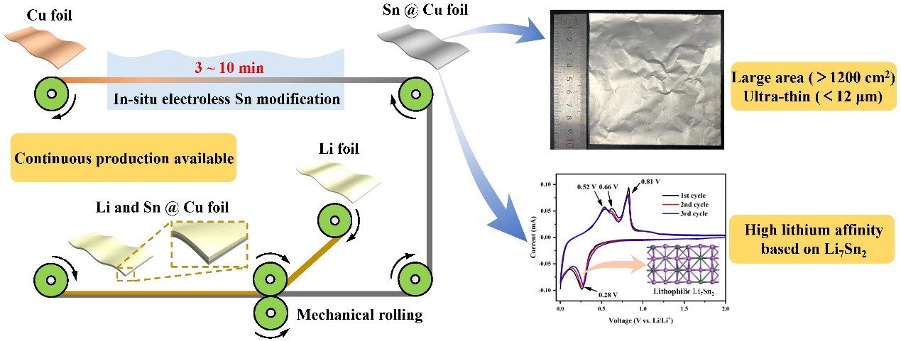 1. 对商用铜基集流体普适化的原位非电镀化学锡修饰策略。